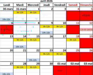 Quand ça se met pour vous et votre agenda, (matinée, soirée, samedi matin, dimanche après-midi) pour venir 1x, pour revenir, pour découvrir, voir si cela vous plait...