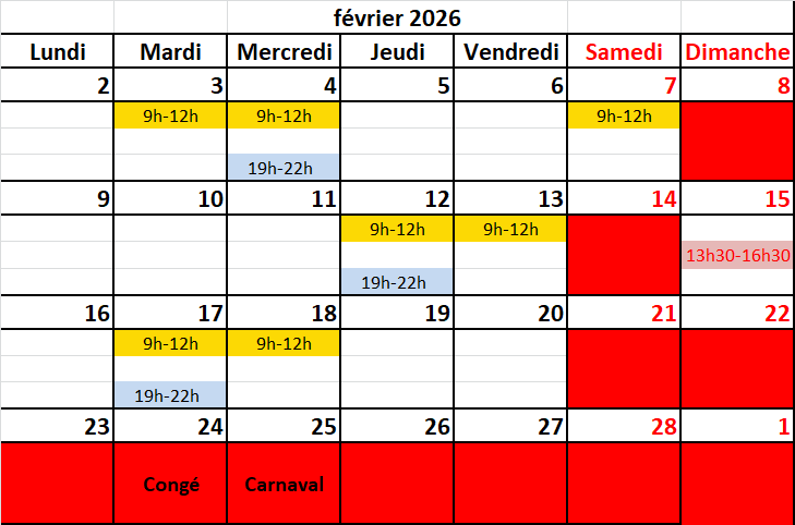 Voici le planning du mois de janvier.