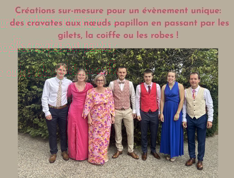Je réalise des créations à vos mesures selon vos besoins et vos désirs en habillement principalement pour femmes et enfants, mais quelques créations pour hommes aussi réalisées.
