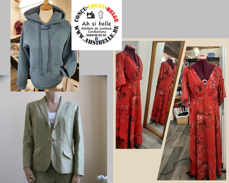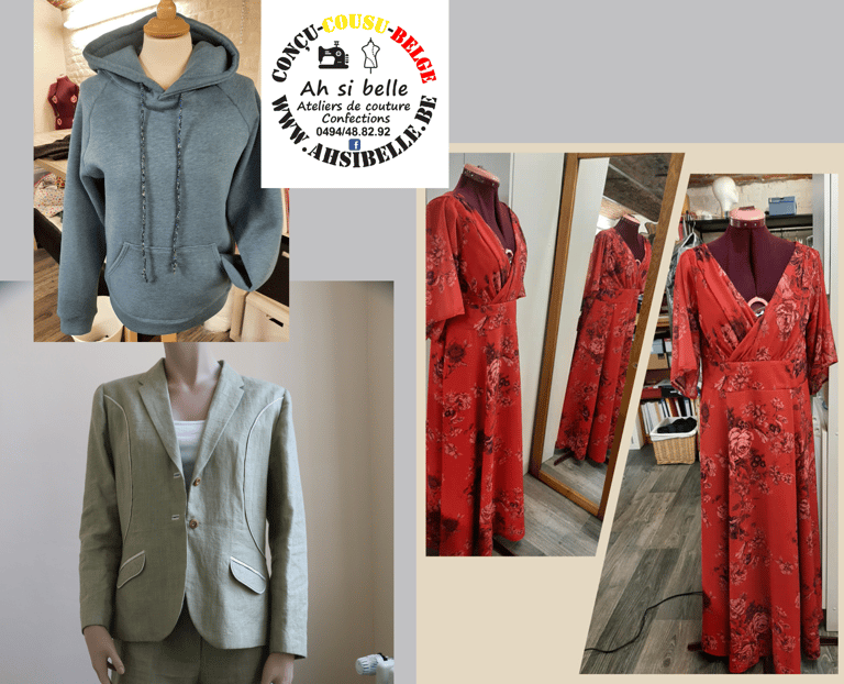 Ce travail artisanal conçu, cousu, belge nécessite différentes étapes: par exemple en habillement: