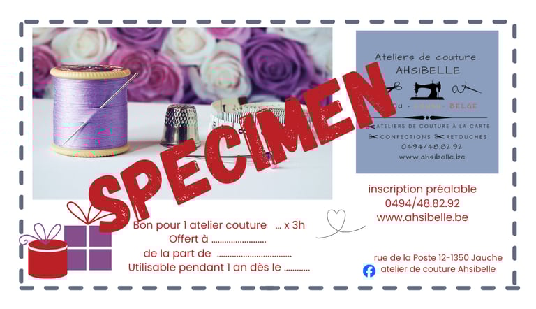 Aussi toujours possibilité de « bons-cadeaux » pour 1 ou plusieurs ateliers de couture ;-)